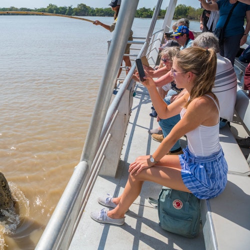 Acércate a algunos de los cocodrilos saltarines más grandes de Australia. Navega por el río Adelaida y aprende de tus guías sobre los cocodrilos y el ecosistema circundante.