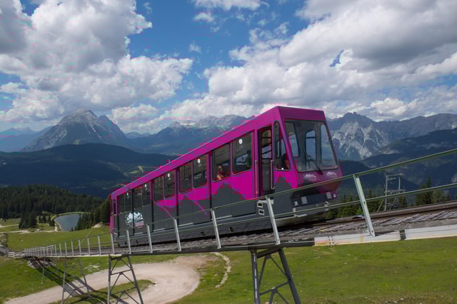 Disfruta de un cómodo trayecto de subida y bajada en el funicular hasta el Rosshütte Seefeld y contempla impresionantes vistas panorámicas de la meseta del Tirol.