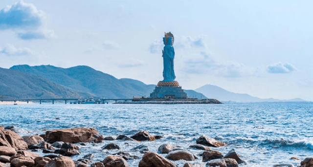1. El Buda Guanine de Nanhai en el mar es el más alto en el océano que puedes ver desde el aeropuerto cuando aterrizas en Sanya.