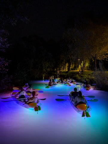 Vive una aventura única en kayak en la calma de la tarde. Adéntrate en el mar Adriático en un kayak transparente iluminado y admira los colores brillantes del agua mientras exploras.