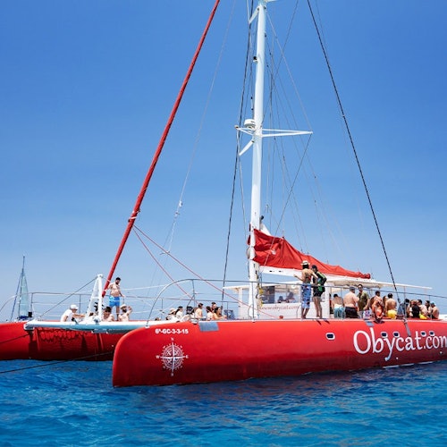 Descubre la belleza de la Isla de Lobos en un crucero en catamarán. Nada, practica snorkel y come con bebidas frías ilimitadas y disfruta de tiempo libre para explorar los lugares más destacados de la isla.