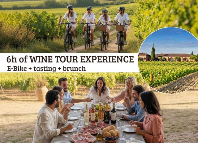 Wine tour guiado por el Penedés con paseo en e-bikes entre viñedos y brunch con cata de vinos y cavas en Caves Ventura Soler, en un entorno único entre viñas. ♂️