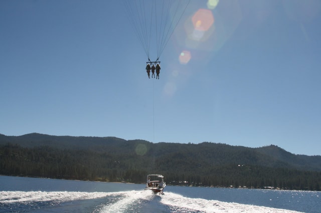 Sobrevuela el lago Tahoe y disfruta de las extraordinarias vistas de las montañas y el agua. Experimenta la emoción de hacer parapente a una altura flexible con una tripulación acreditada por la Guardia Costera de Estados Unidos.