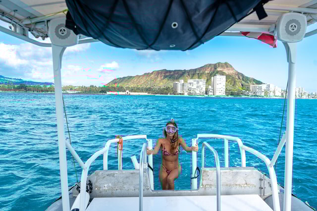 Haz un crucero privado por Waikiki, Honolulu y Diamond Head en tu propio barco privado. Grupos de hasta 6 personas. Posibilidad de snorkel, puestas de sol, fuegos artificiales, recorridos panorámicos y cruceros para ver la vida marina.