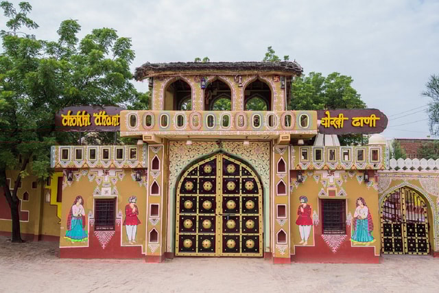 Disfruta de una animada velada cultural en Jaipur con espectáculos folclóricos en vivo, actividades tradicionales y una auténtica cena rajasthani en Chokhi Dhani para vivir una experiencia inolvidable y envolvente al estilo de un pueblo.