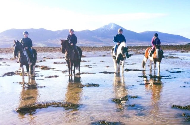 Disfruta de un paseo a caballo por la playa con amplias vistas de la bahía de Clew. Explora la costa a un ritmo pausado y admira monumentos locales como Croagh Patrick y la Roca de las Focas.