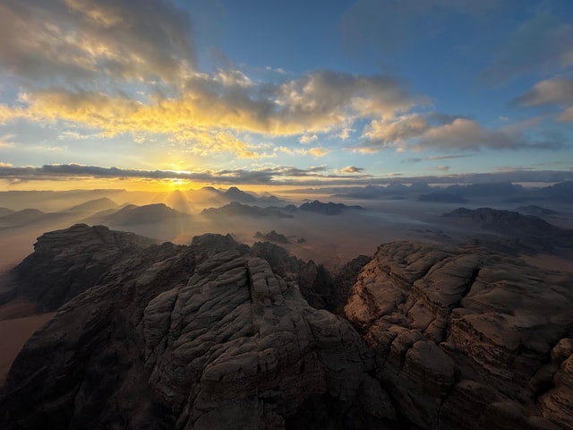 Experimenta la impresionante belleza de Wadi Rum desde el cielo con un paseo en globo aerostático. Flota sobre el mágico paisaje de las maravillas naturales y los acantilados y cañones de arenisca roja del especial desierto.