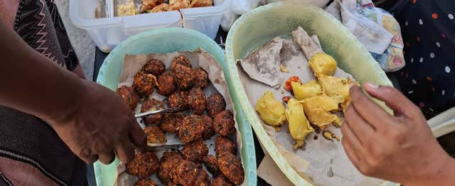 Viazi karai, bhajia en salsa de tarmarindo