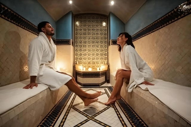 Relájate con un hammam marroquí tradicional y un masaje en Marrakech. Disfruta de un baño marroquí, un masaje y un vaso de té de menta marroquí tradicional.