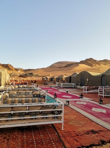 Pase noches bajo el cielo estrellado en nuestro lujoso Merzouga Desert Camp. Lejos de lo común, nuestro campamento ofrece un ambiente mágico, cocina tradicional y espectáculos culturales.