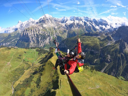 Sobrevuele los paisajes más emblemáticos de Suiza en una excursión en parapente biplaza por el valle de Mürren-Lauterbrunnen.