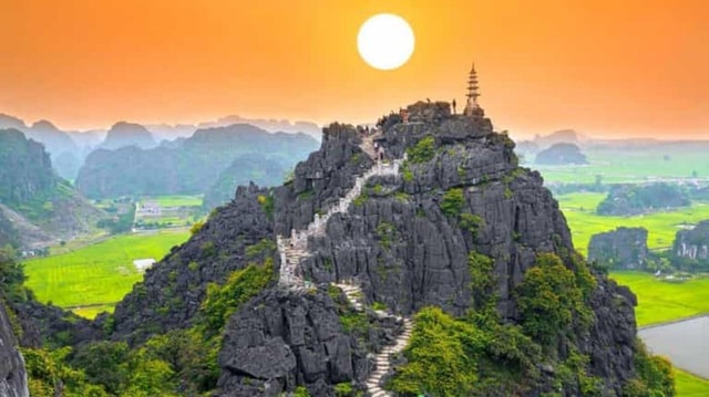 Visita la pagoda de Bai Dinh, la mayor y más famosa del Sudeste Asiático, disfruta de un tour en barco por Trang An a través de serenos ríos y cuevas, y sube a la cima de la cueva de Mua para disfrutar de unas impresionantes vistas panorámicas de la campiña al atardecer.