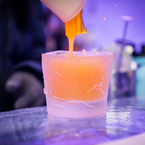 Dégustez des boissons dans l'atmosphère glaciale de l'intérieur.