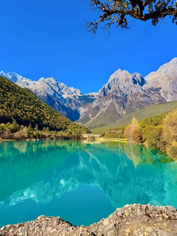 Visitez un village au pied de la montagne enneigée du Dragon de Jade.
