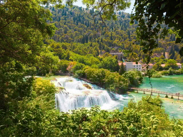 Découvrez les magnifiques cascades de la rivière Krka à Skradinski Buk. Profitez de vues à couper le souffle en vous promenant dans la région et visitez le moulin à eau centenaire toujours en activité.