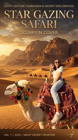 Découvrez la magie du désert en visitant le camp BADU dans la baie de Makadi. Profitez d'un dîner bédouin traditionnel, admirez le coucher de soleil en vous baladant à dos de chameau et observez les étoiles dans le désert de la baie de Makadi.