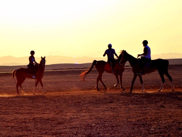 Parcourez le désert d'Hurghada et longez la mer Rouge sur des chevaux calmes et bien dressés. Choisissez entre des excursions au lever ou au coucher du soleil, ou des visites d'une jounée avec petit-déjeuner, dîner, observation des étoiles et baignade en option.