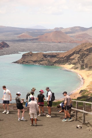 Naviguez sur un yacht haut de gamme en direction de l'île Bartolomé. Montez au belvédère du Pinacle et nagez avec les pingouins, les tortues marines et les étoiles de mer dans des eaux cristallines. Vivez une journée exclusive aux Galapagos.