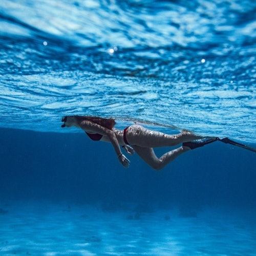 Nagez dans des eaux claires et observez la vie marine à travers des panneaux de verre.