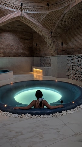 Profitez d'un rituel de bain de soufre privé de luxe dans le quartier historique d'Abanotubani à Tbilissi. Détendez-vous dans votre propre bassin de soufre chaud, relaxez-vous dans un salon confortable et savourez un verre de vin ou une tisane offerts.