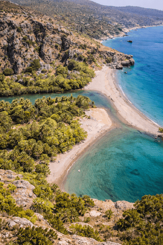 Naviguez jusqu'à la plage exotique de Preveli, baignez-vous dans des eaux cristallines et explorez les superbes gorges de Kourtaliotiko, ses sources et ses falaises. Profitez d'une journée de détente et de paysages pittoresques dans le sud de la Crète.