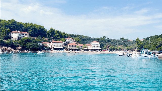 Ensuite, le bateau visite soit le village de pêcheurs de Katigiorgis ou la plage d'Asselinos, où vous pourrez vous détendre, nager ou déjeuner (non inclus). Le voyage se poursuit devant des plages célèbres comme Mandraki, Agia Eleni, Banana et Koukounaries avant d'arriver à l'île de Tsougrias, un paradis tropical aux eaux cristallines. Le bateau rentre au port de Skiathos à 17h30. Cette visite d’une journée complète met en valeur la beauté, l’histoire et les plages sereines de l’île.
