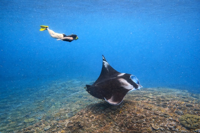 Commencez par une visite panoramique des sites incontournables de Nusa Penida, tels que la plage de Kelingking. Ensuite, faites de la plongée avec tuba à Manta Bay, Crystal Bay et Gamat Bay pour nager avec les raies manta et explorer les récifs coralliens colorés dans des eaux cristallines.