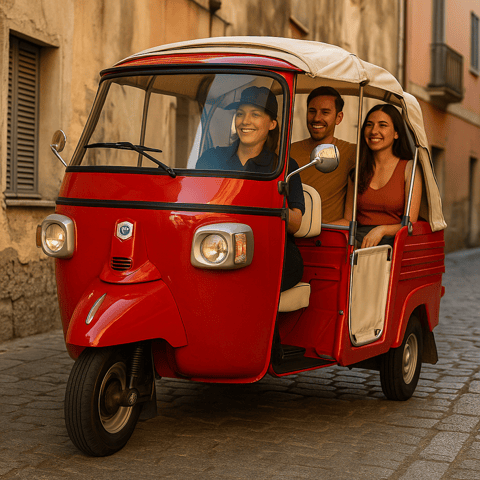 Découvrez la beauté d'Olbia à bord d'un tuk-tuk privé. Profitez d'une visite romantique et exclusive à travers l'histoire et la culture tout en admirant la vue imprenable sur la mer.