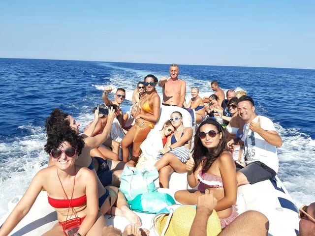 Excursion privée en bateau pneumatique avec skipper depuis Torre Vado pour des groupes jusqu’à 12 personnes, à la découverte du Salento entre criques, grottes et eaux cristallines, avec itinéraire flexible et arrêts baignade.