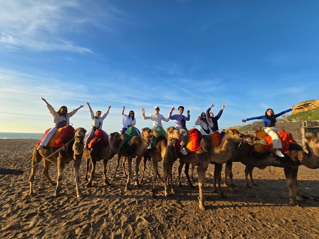 Nous pouvons également faire une promenade en chameau à la plage sur votre demande, une façon amusante de découvrir le sable doré de l'Atlantique sur un mouvement 4x4, façon chameau!