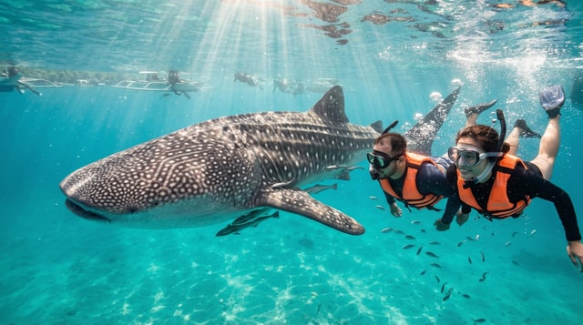 Nagez avec le plus grand poisson au monde, le requin-baleine, à Oslob. Observez de près leur nature douce et leur comportement de filtreur dans les eaux cristallines.