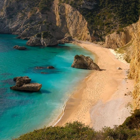 Partez en randonnée le long des falaises atlantiques sauvages du parc naturel d'Arrábida, découvrez une plage cachée et marchez jusqu'aux empreintes de dinosaures vieilles de 150 millions d'années sur l'un des littoraux les plus spectaculaires du Portugal.