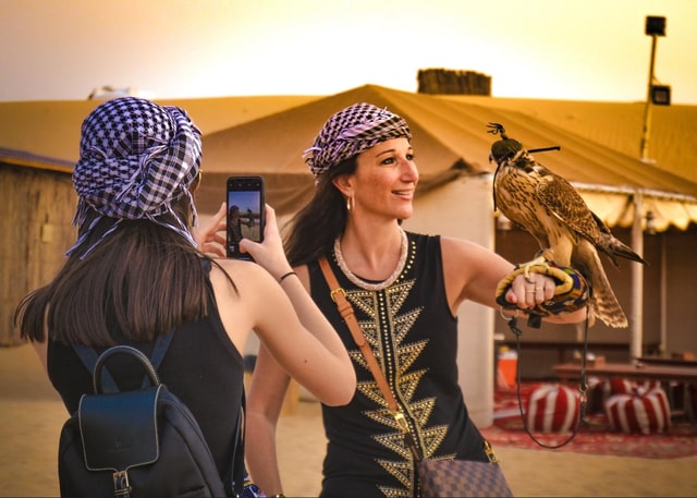 Échappez à la ville et explorez la beauté du désert lors d'une excursion avec prise en charge et retour à Doha en option. Soyez les invités des Bédouins locaux et approchez les chameaux et les faucons.