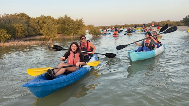 Pagayez à travers les superbes mangroves d'Al Khor lors d'une excursion guidée en kayak. Explorez les canaux cachés, observez les oiseaux et la vie marine, et profitez d'une escapade calme et inoubliable, idéale pour les familles et les amoureux de la nature.