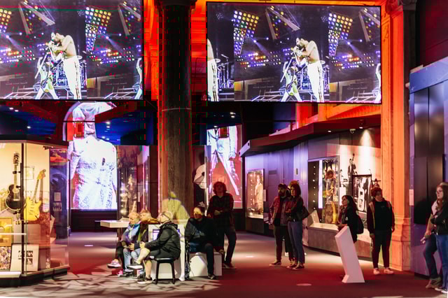 La British Music Experience raconte l'histoire de la musique britannique à travers des costumes, des instruments, des spectacles et des souvenirs, des Beatles à Adele et Oasis.