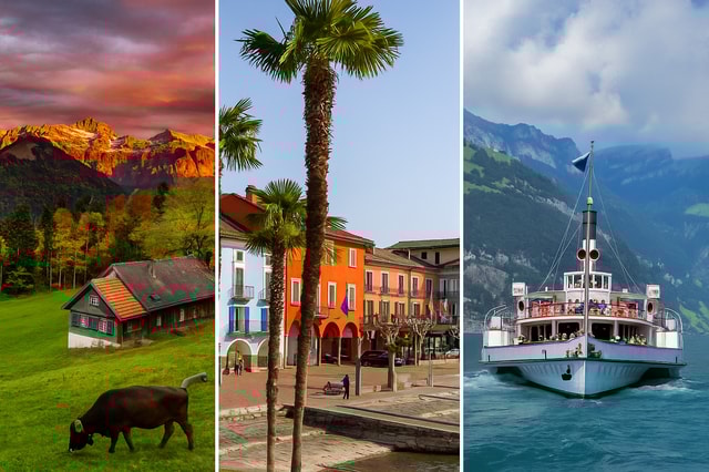 Depuis Zurich, découvrez trois mondes suisses : les traditions et le fromage d'Appenzell, les sommets et les lacs des Alpes centrales, et les villages de maisons en pierre et l'ambiance italienne du Tessin, une trilogie d'aventures guidée par un géographe.