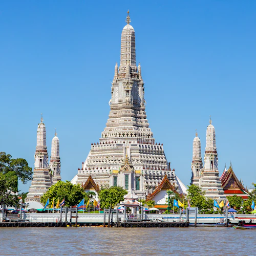 Wat Arun (Temple de l'Aube). Montez l'emblématique prang (tour de style khmer) et l'incroyable Grand Palais, centre de religion et de monarchie en Thaïlande.