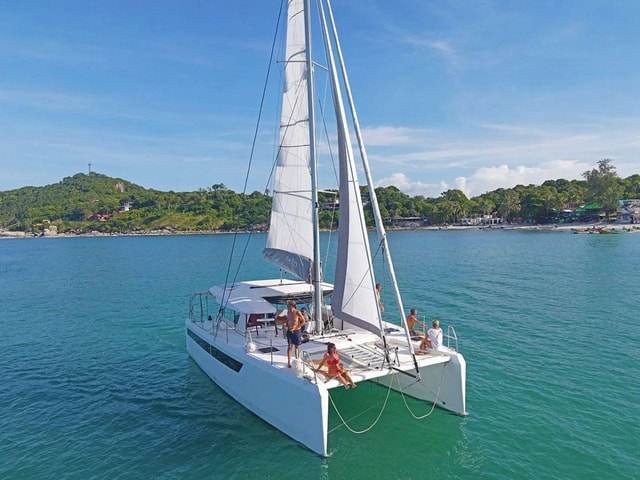 Naviguez autour de Koh Phangan en catamaran : snorkeling, paddle, détente et coucher de soleil magique.