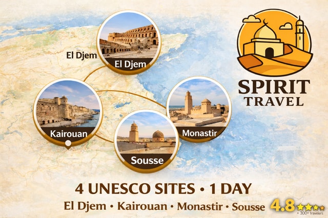 Visite VIP : El Jem, Kairouan, Monastir/Sousse|Prise en charge incluse