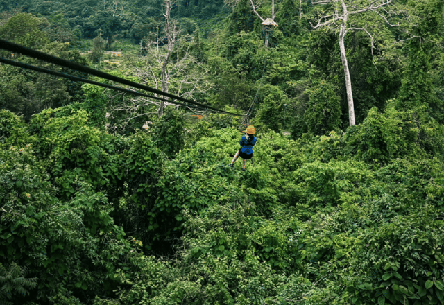 Farai poi un giro in zipline attraverso le foreste e i fiumi lussureggianti.
