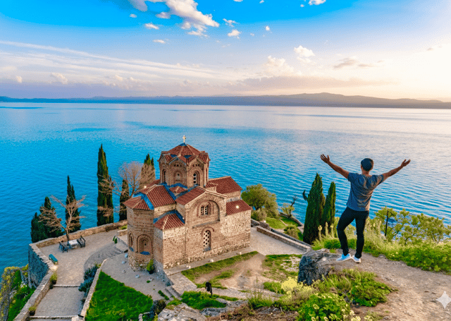 Attraversa il confine con la Macedonia del Nord in questo tour guidato di un giorno. Scopri il centro storico di Ocrida, visita la chiesa di San Giovanni a Kaneo e goditi una vista mozzafiato sul lago più antico d'Europa.