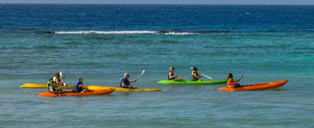 In questo emozionante tour in kayak, esplorerai la splendida costa meridionale di Aruba e visiterai la famosa Sea Glass Island. Pagaia attraverso acque cristalline nei nostri esclusivi kayak a fondo trasparente, che offrono una vista unica sul vivace mondo sottomarino. Con due comodi orari del tour, 9:00 e 13:00, puoi scegliere il programma che funziona meglio per te.