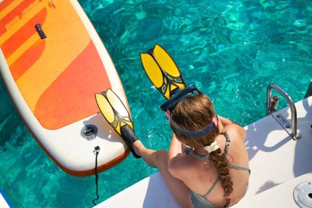 Il tuo pomeriggio di lusso inizia a Ierapetra con una crociera verso l'isola di Chrissi. Nuota, fai snorkeling o pagaia in acque turchesi mentre il nostro equipaggio serve un pasto biologico e bevande illimitate sotto il sole cretese.