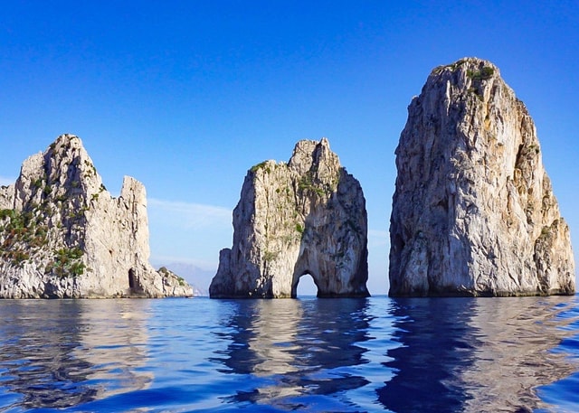 Naviga in barca intorno alla splendida isola di Capri e ammira le sue attrazioni naturali, tra cui le meravigliose grotte marine, la Grotta Bianca e la Grotta Verde e i magnifici Faraglioni.