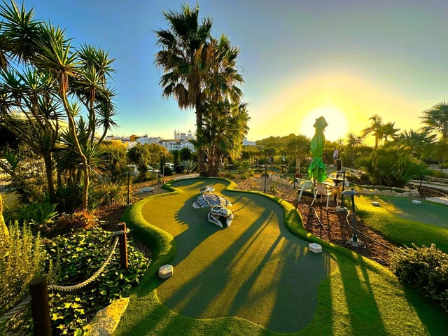Goditi una giornata di puro divertimento al Mini-Golf Eden Alvor, in Algarve. Mettiti alla prova su un campo da 18 buche immerso in giardini tropicali e rilassati al bar in loco con bevande rinfrescanti.