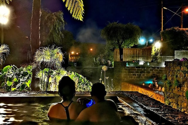 Immergiti nelle sorgenti calde geotermiche delle Azzorre al tramonto con questo tour serale a Furnas. Rilassati nelle acque curative di Poça da Dona Beija sotto le stelle e gusta un piatto tradizionale.