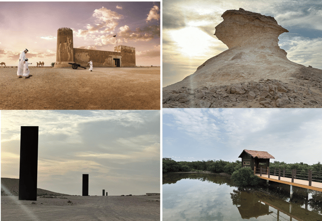 Esplora il Qatar in un giorno, da Jazirat Bin Ghanim a Zekreet. Scopri paesaggi desertici, formazioni rocciose e bellezze costiere in questo viaggio culturale panoramico.