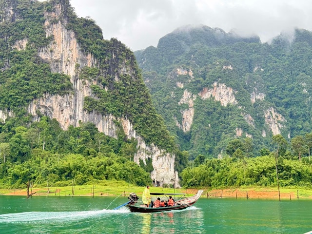 Esplora i punti salienti di Khao Sok con un tour privato di mezza giornata in barca a coda lunga del lago Cheow Lan. Nuota in acque smeraldine mozzafiato nella foresta pluviale più antica del mondo e visita la Grotta del Diamante.