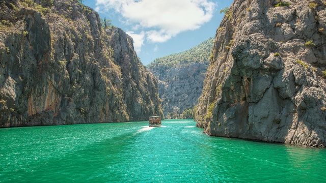 Scopri la serena bellezza del Green Canyon con una gita in barca da Alanya o Side. Gusta un delizioso pranzo a base di piatti locali, nuota nelle acque cristalline e rilassati sulla barca.