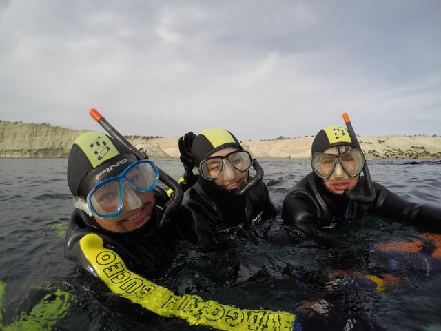 Snorkelen met vrijgevochten zeeleeuwen in het natuurreservaat van Punta Loma, Patagonië Argentinië. 40 minuten snorkelen. Inclusief snorkeluitrusting en professionele instructeur. Maximaal 9 personen